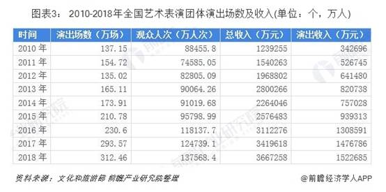 2018年全國藝(yì)術表演團體共演(yǎn)出312.46萬場,比上年增長6.4%,其中赴農村演出178.82萬場(chǎng),赴農村演出場次占總演出場次(cì)的(de)57.2%;國內觀眾13.76億人次,比上年增長10.3%,其中農村觀眾7.79億人次;總收入366.73億元(yuán),比上年增長7.2%,其中演出收(shōu)入(rù)152.27億元,增長3.1%。