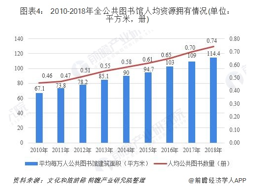 2018年末(mò)全國平均每萬人公共圖書館建築麵積114.4平方米(mǐ),比上年末增加5.4平方米;全國人均圖書藏(cáng)量0.74冊,比上年末增加0.04冊;全年全國人均購書費1.77元,比上年末增加0.07元。
